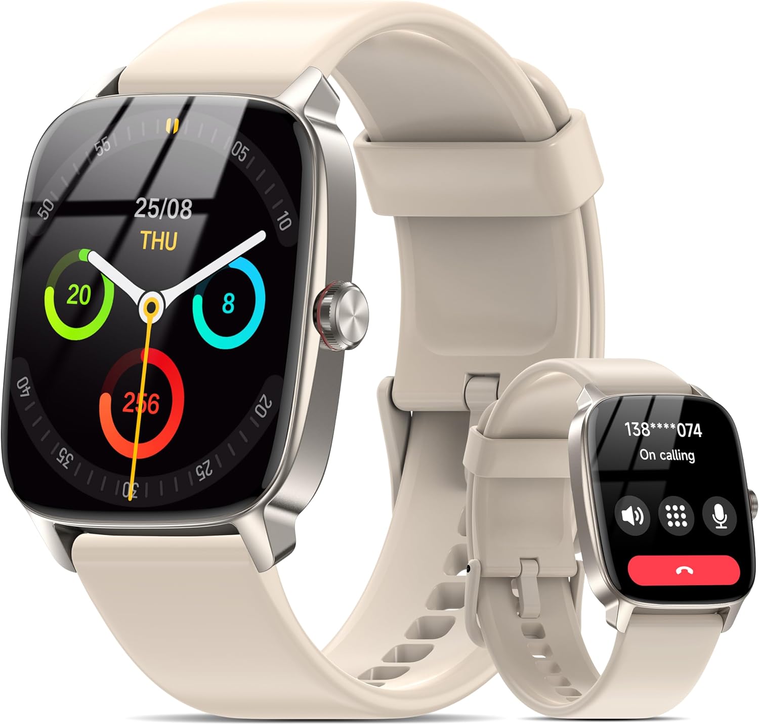 1.85" HD Fitness Tracker with Bluetooth Calling, Compatible with iOS & Android (Starlight White)