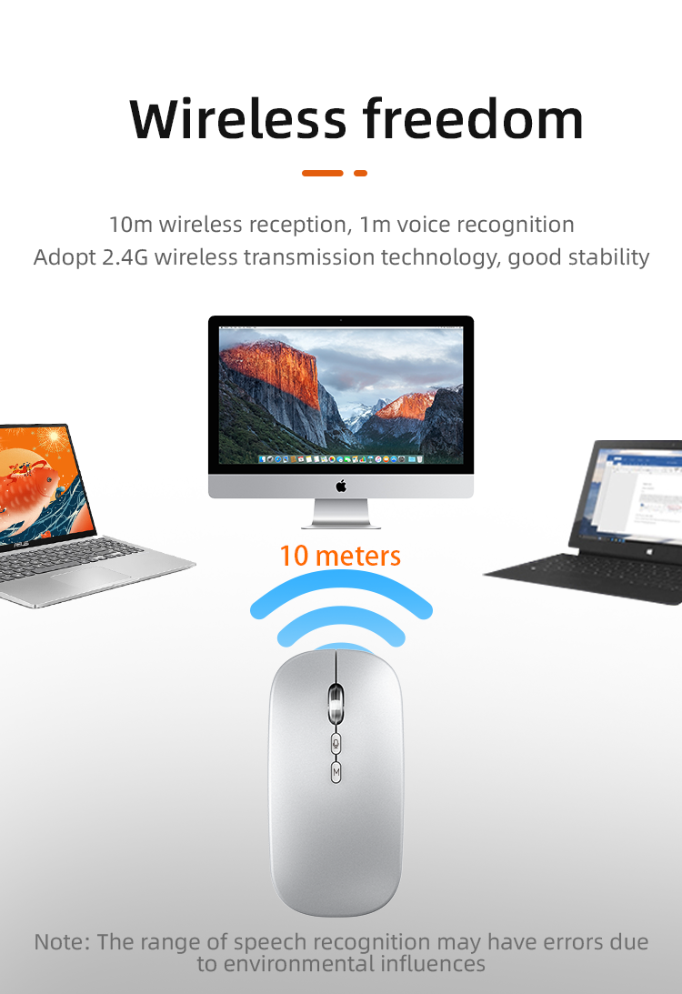 AI Intelligent Voice Typing Mouse - Silent Wireless 2.4G USB Office Mouse with Smart AI Voice Control