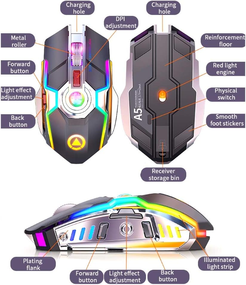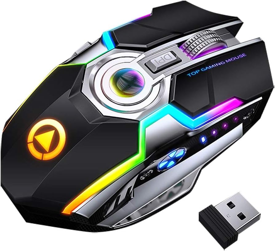 ErgoBeam Wireless Rechargeable Gaming Mouse Mice Souris, RGB Backlit 7 Buttons 1600DPI for PC Gamer Laptop Desktop Chromebook Mac