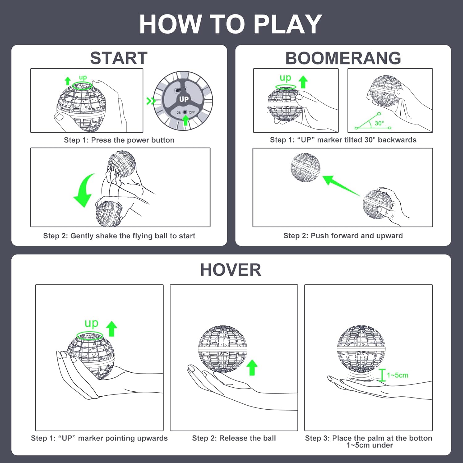 Experience exciting, interactive play with this high-tech flying orb ball. Built with a gyroscope and smart AI chip, it delivers stable flight, smooth spins, and a fun boomerang return effect—all controlled with simple hand movements.