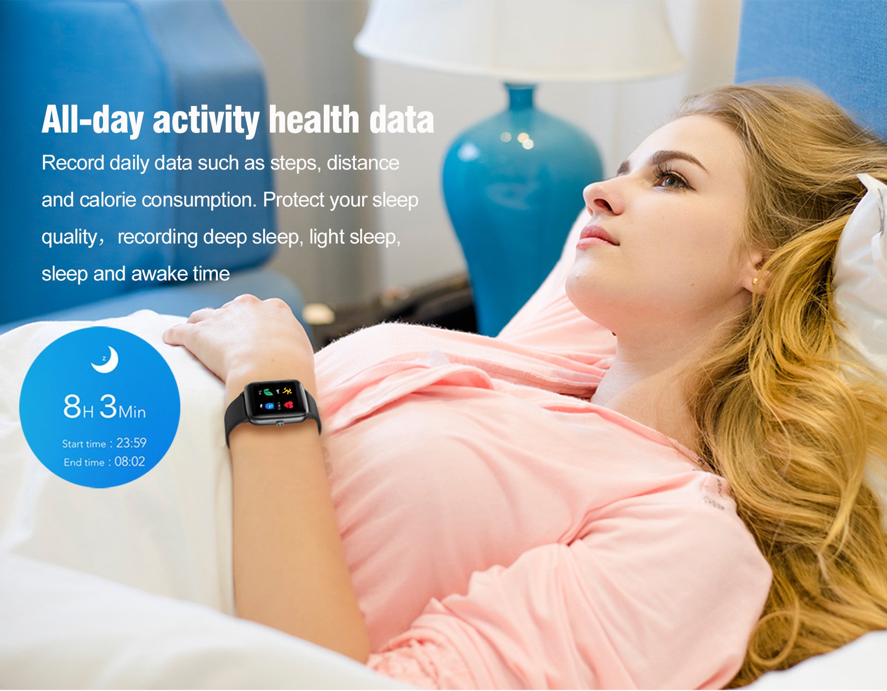 Accurate activity tracker - This fitness tracker supports 9 sports mode to record your workout on very Fit Pro, connect to your smartphone's GPS, measure accurate real-time pace, calorie and distance, set and REACH your activity goals each day. This activity watch includes more practical functions like music control, alarm clock, relax mode even Stress training. It's not just a health tracker.