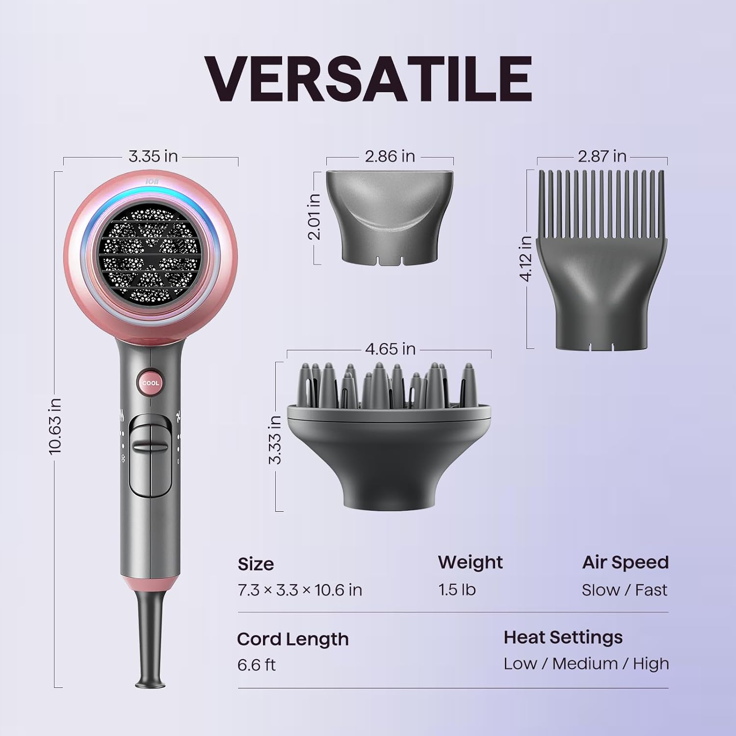 The dryer emits millions of negative ions to reduce static, smooth flyaways, and enhance shine—leaving your hair sleek, glossy, and healthy-looking.