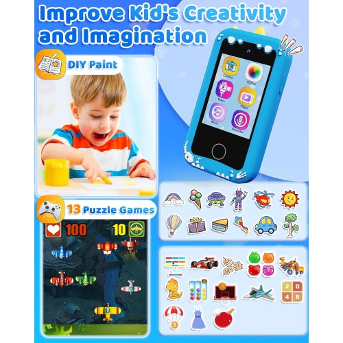 🤳【Dual Cameras & Upgraded Drop Protection】:Being involved and never missing a kid's precious growth moments. The phone toys is equipped with auto-focus, 8.0-megapixel dual cameras and 23 stickers, which kids can easily capture clear photos and video, sharing their inner world with you voluntarily, strengthening parent-child connection. Upgraded kids phone can effectively protect from fear of impact and provide strong protection when it falls from high place.