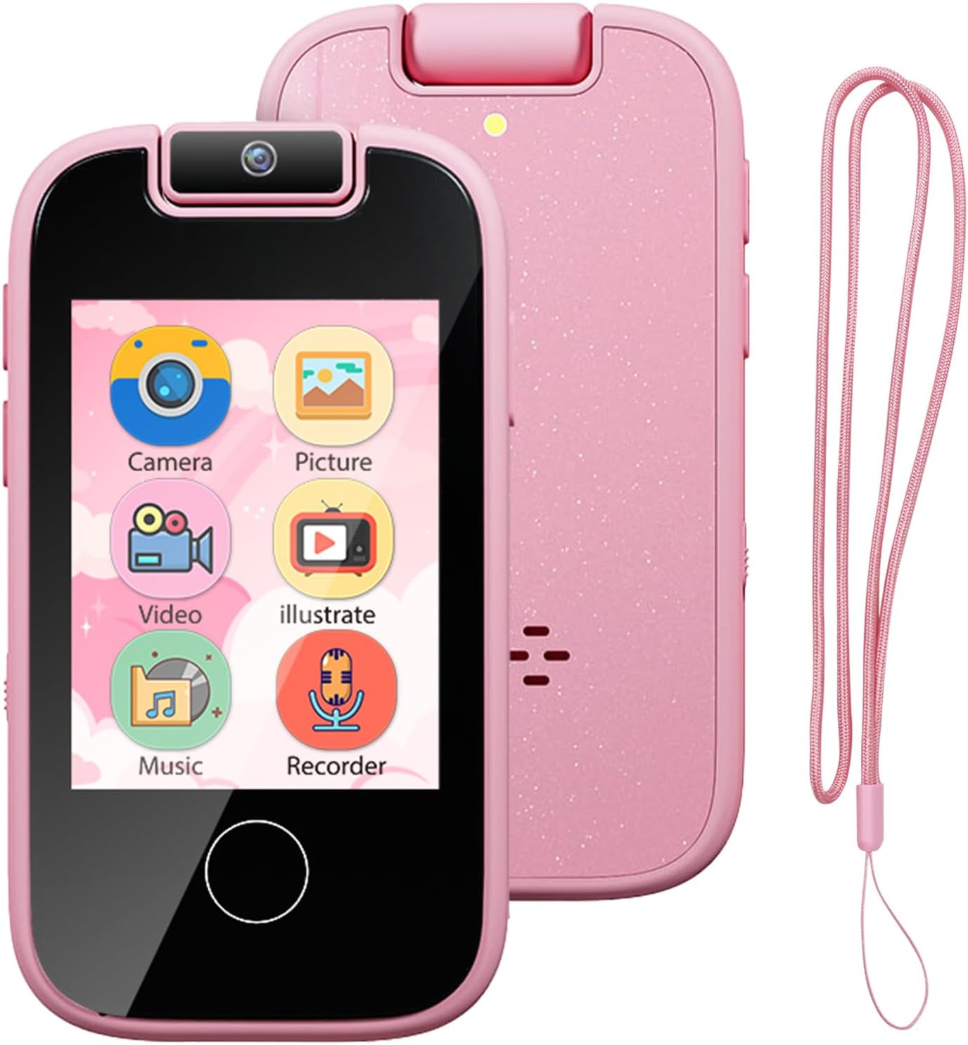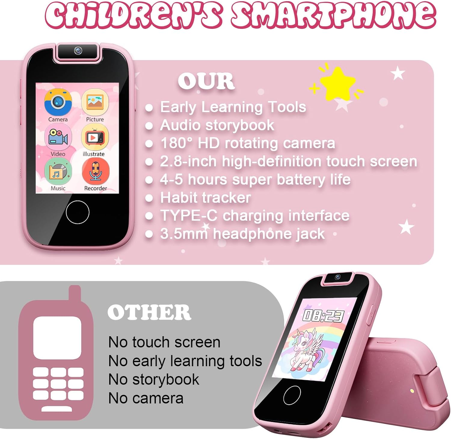 Kids Smart Phone Toy – 2.8" Touchscreen, Dual Cameras, MP3, 13 Games & Habit Tracker (Pink)