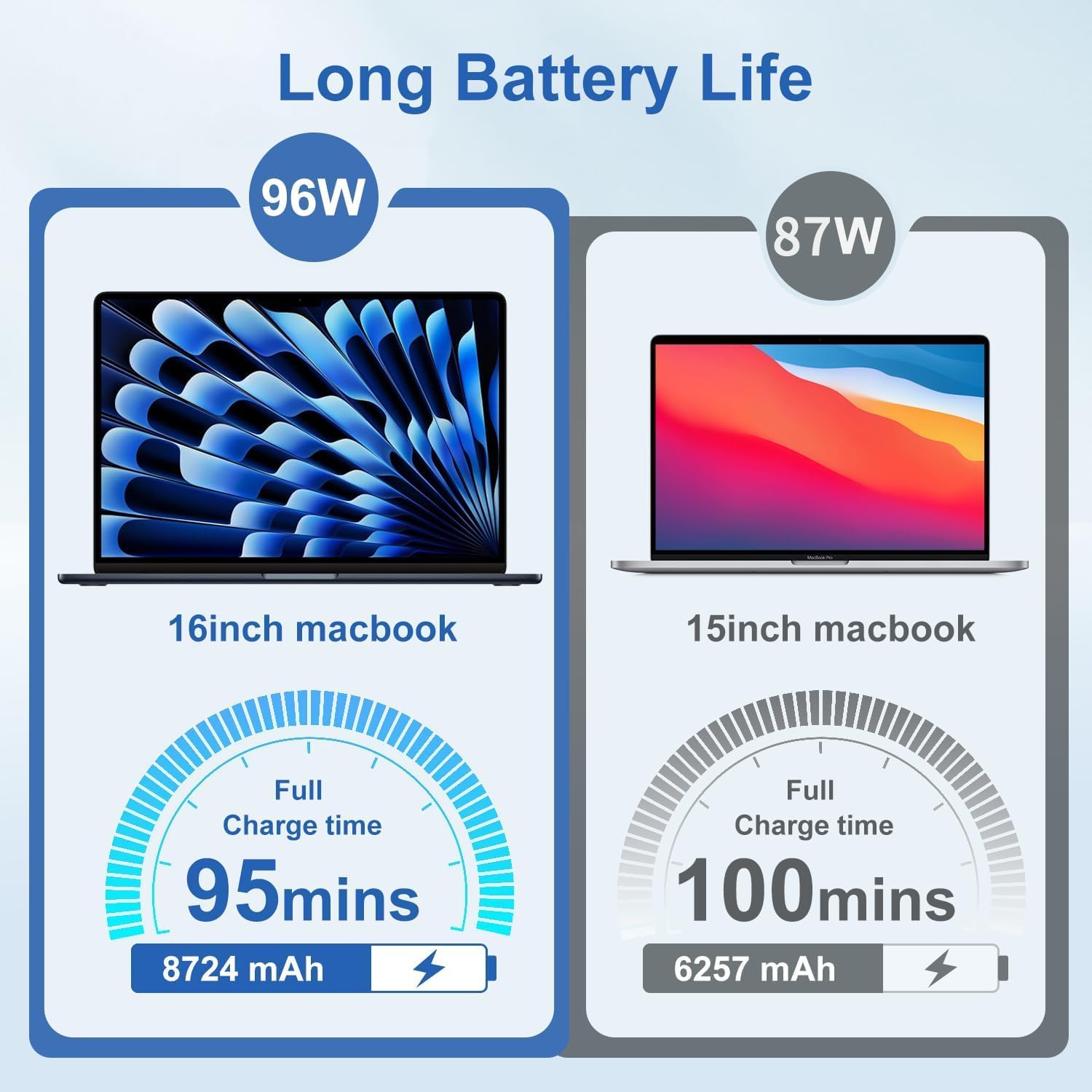 MacBook Pro Charger 96W/70W USB-C to MagSafe 3 Power Adapter