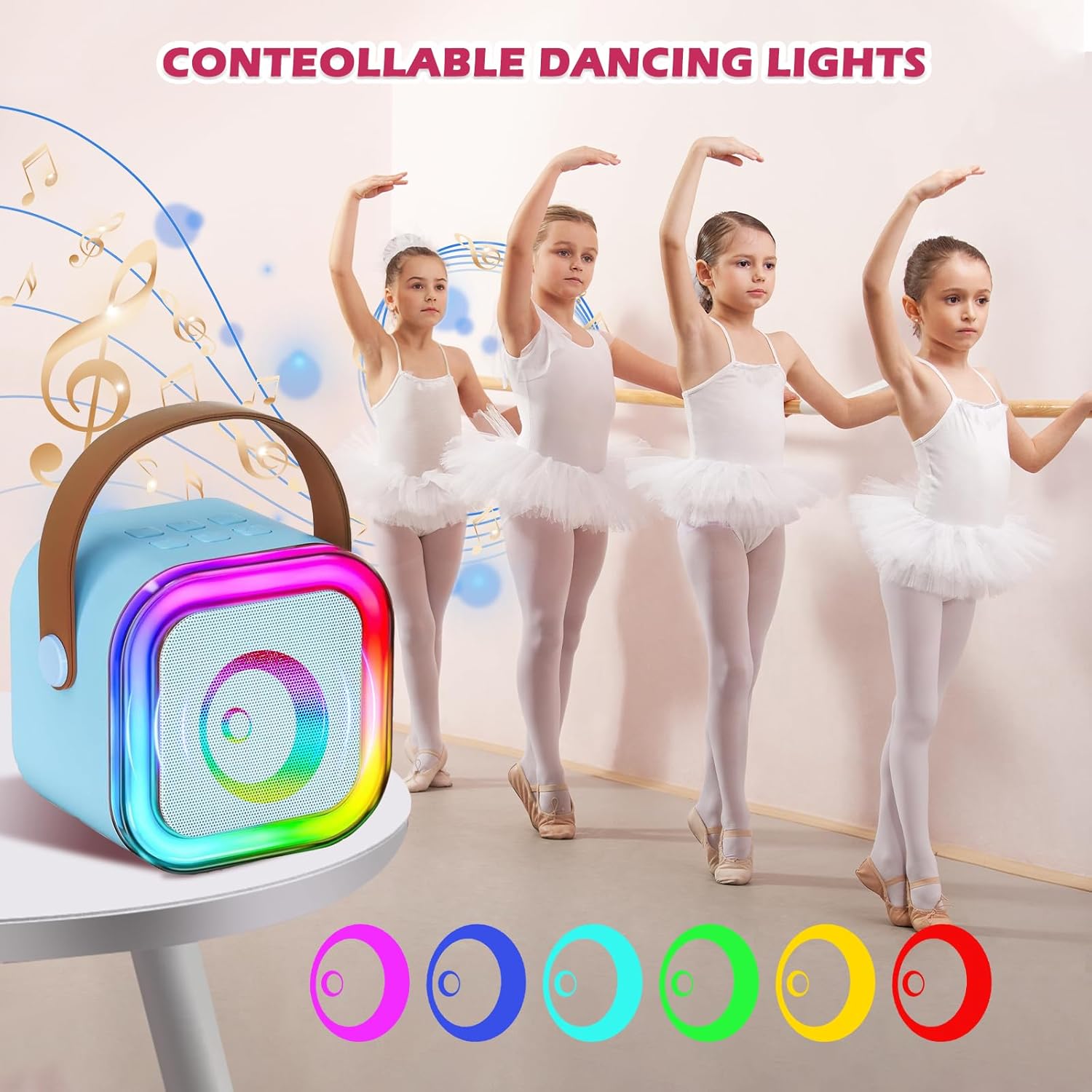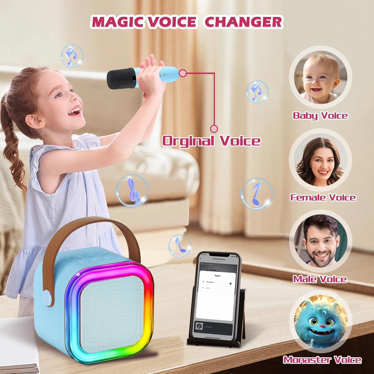 Mini Kids Karaoke Machine 2024, Portable Karaoke Speaker with 2 Wireless Mics & Party Lights, Christmas & Birthday Gift for Girls & Boys Ages 4-12+ (Blue)