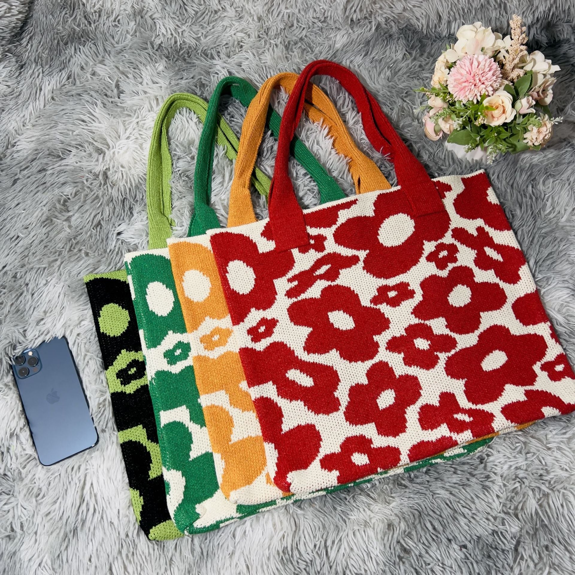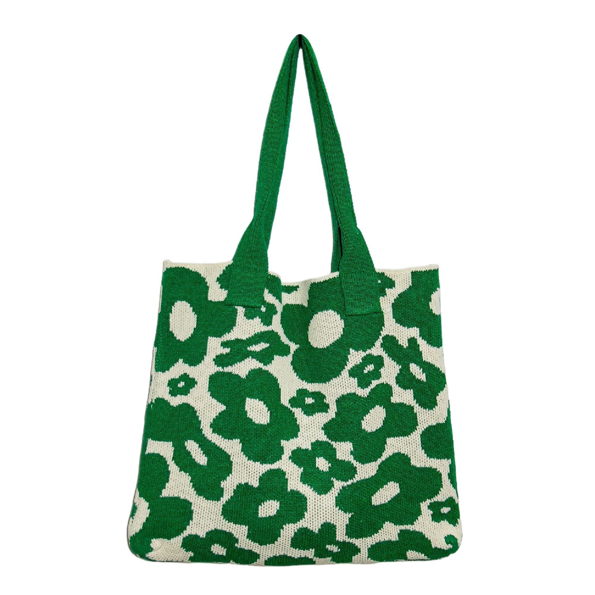 New Flower Bag Knitted Bag Large Capacity Tote Bag Student Shoulder Bag Woolen Bag Trendy Girl