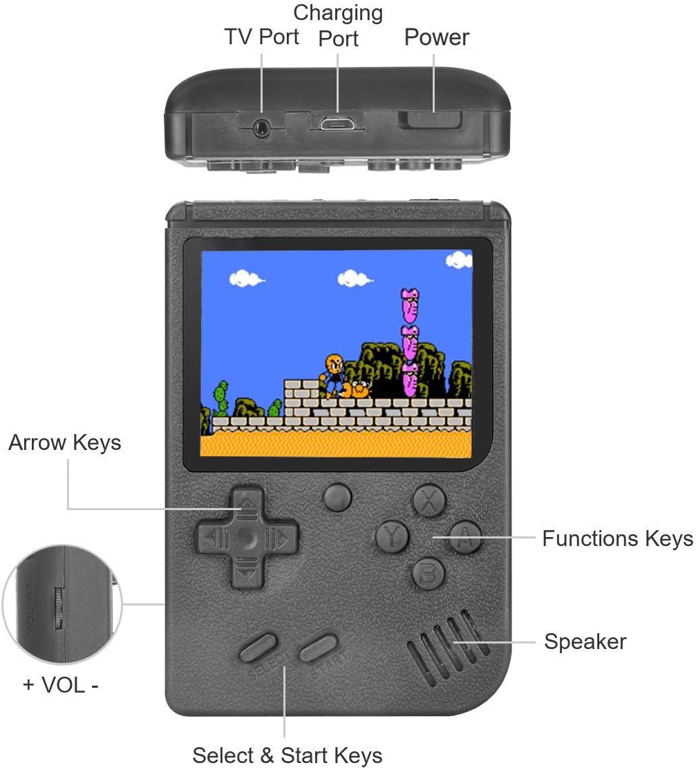 Retro Handheld Game Console - 400 Classic Games, 3.0-Inch Screen (Black)