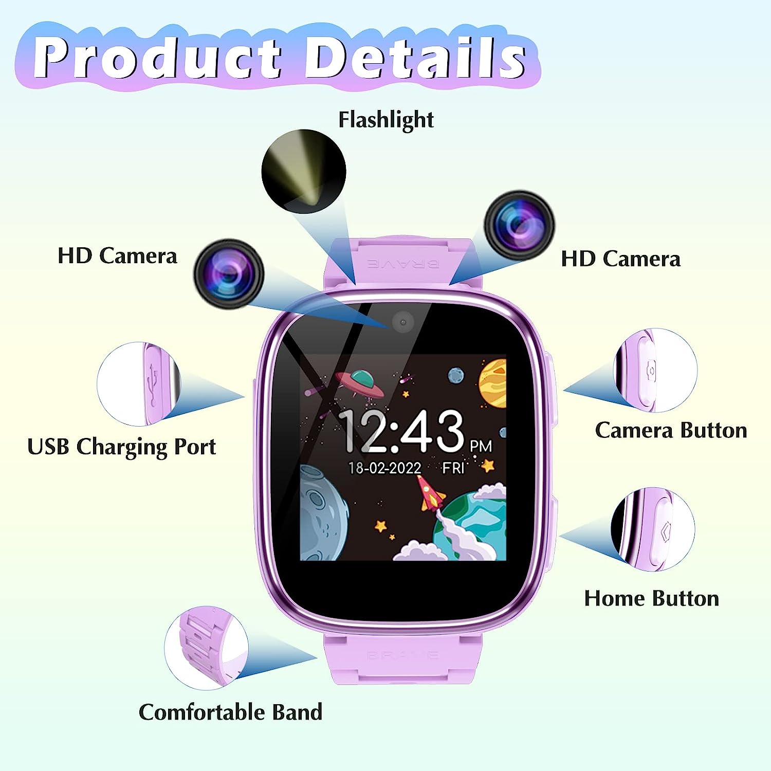Newest Features: Explore new horizons with our kid's smartwatch, equipped with innovative functions like Audiobook, Time Teacher, Sound Teacher, Habit Tracker, Camera Sticker, and Parental Control.