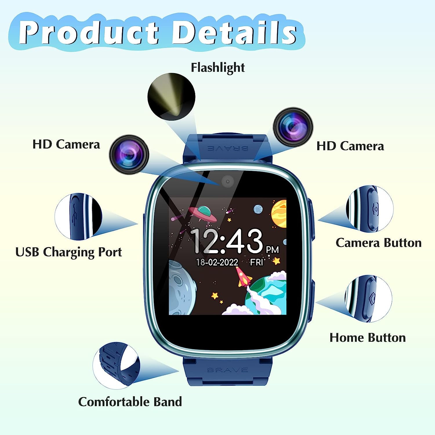 Newest Features: Explore new horizons with our kid's smartwatch, equipped with innovative functions like Audiobook, Time Teacher, Sound Teacher, Habit Tracker, Camera Sticker, and Parental Control.