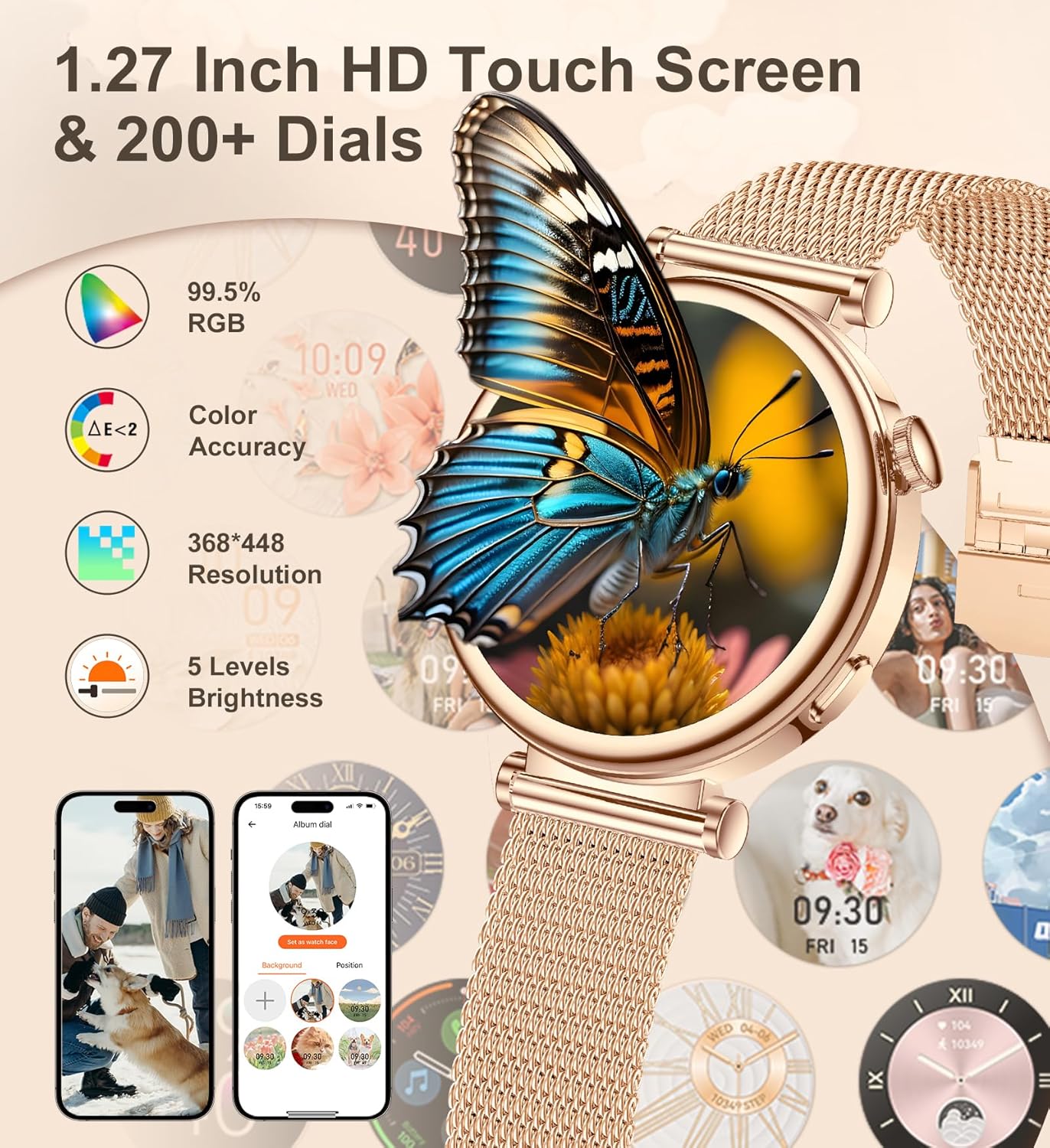 Women’s Smart Watch with Bluetooth Calling – 1.27" Touchscreen Fitness Tracker, 100+ Sports Modes, Health Monitor, Waterproof, for iOS & Android