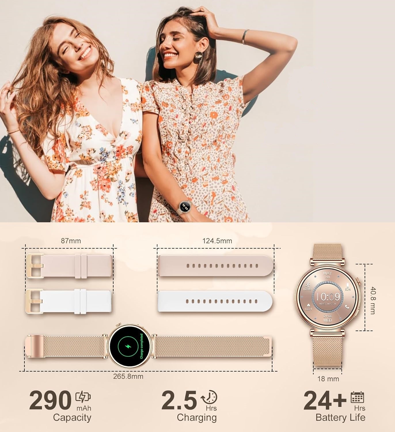 Elevate your everyday style and wellness with this Women's Smart Watch. Featuring a vibrant 1.27" HD touchscreen and elegant 41mm case, this smartwatch is tailored to fit your life and your look. Enjoy Bluetooth call functionality, smart notifications, and advanced health tracking—all in one chic wearable.