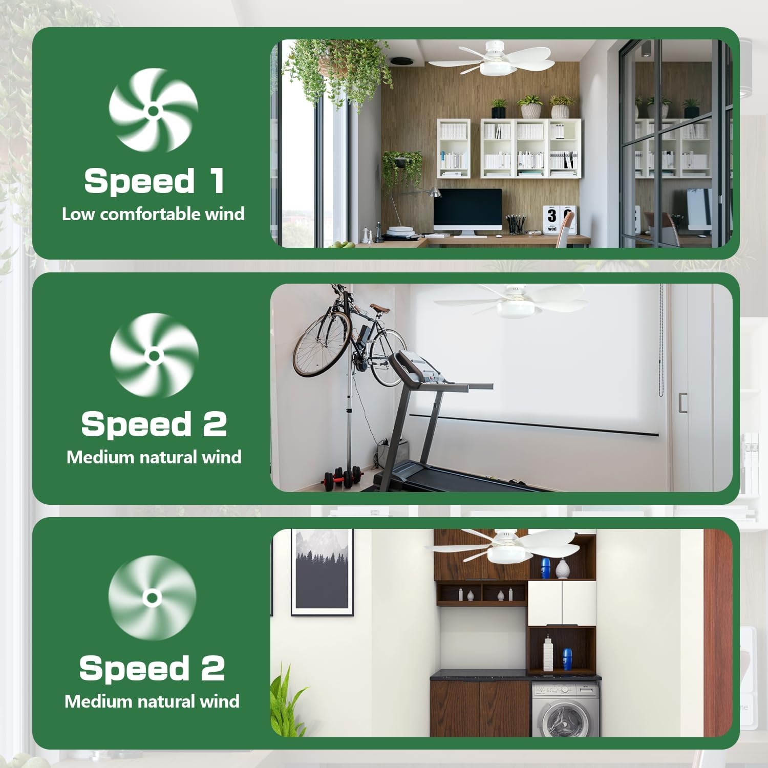 Compact Ceiling Fan with Light: Designed for optimal space utilization, this sleek and minimalist ceiling fan light is perfect for small areas like kitchens, bathrooms, closets, garages, kids' bedrooms, hallways, laundry rooms, or lofts. It combines style and practicality, offering efficient lighting and cooling for tight spaces.