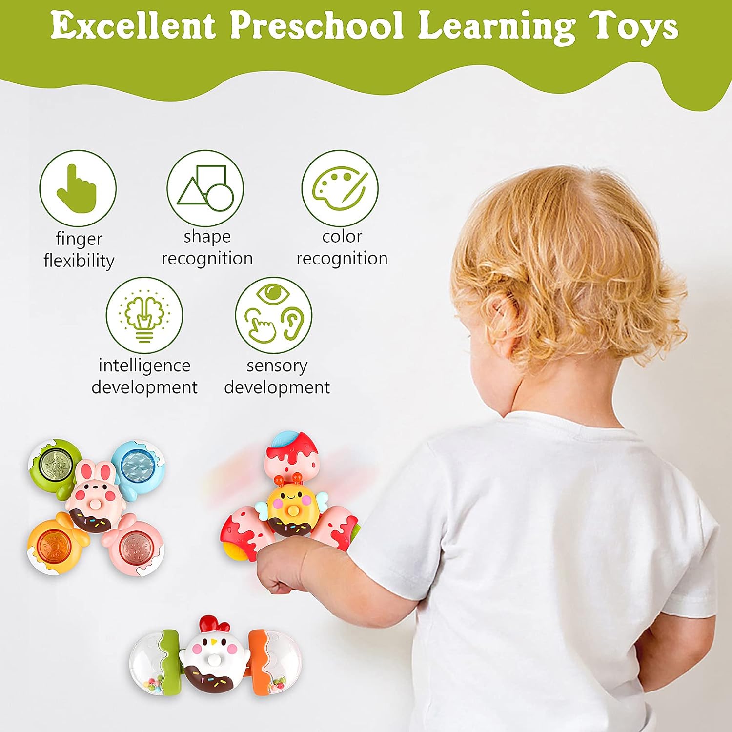 Discover our Suction Cup Spinner Toys for babies and toddlers. This set features 12 detachable, vibrant pieces and 3 rotating elements that boost color recognition and hand-eye coordination. Made from durable ABS and soft silicone, with a strong suction cup for bath time fun—perfect for gifts and outdoor play!