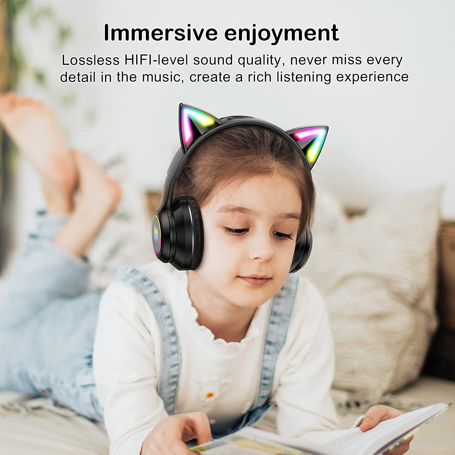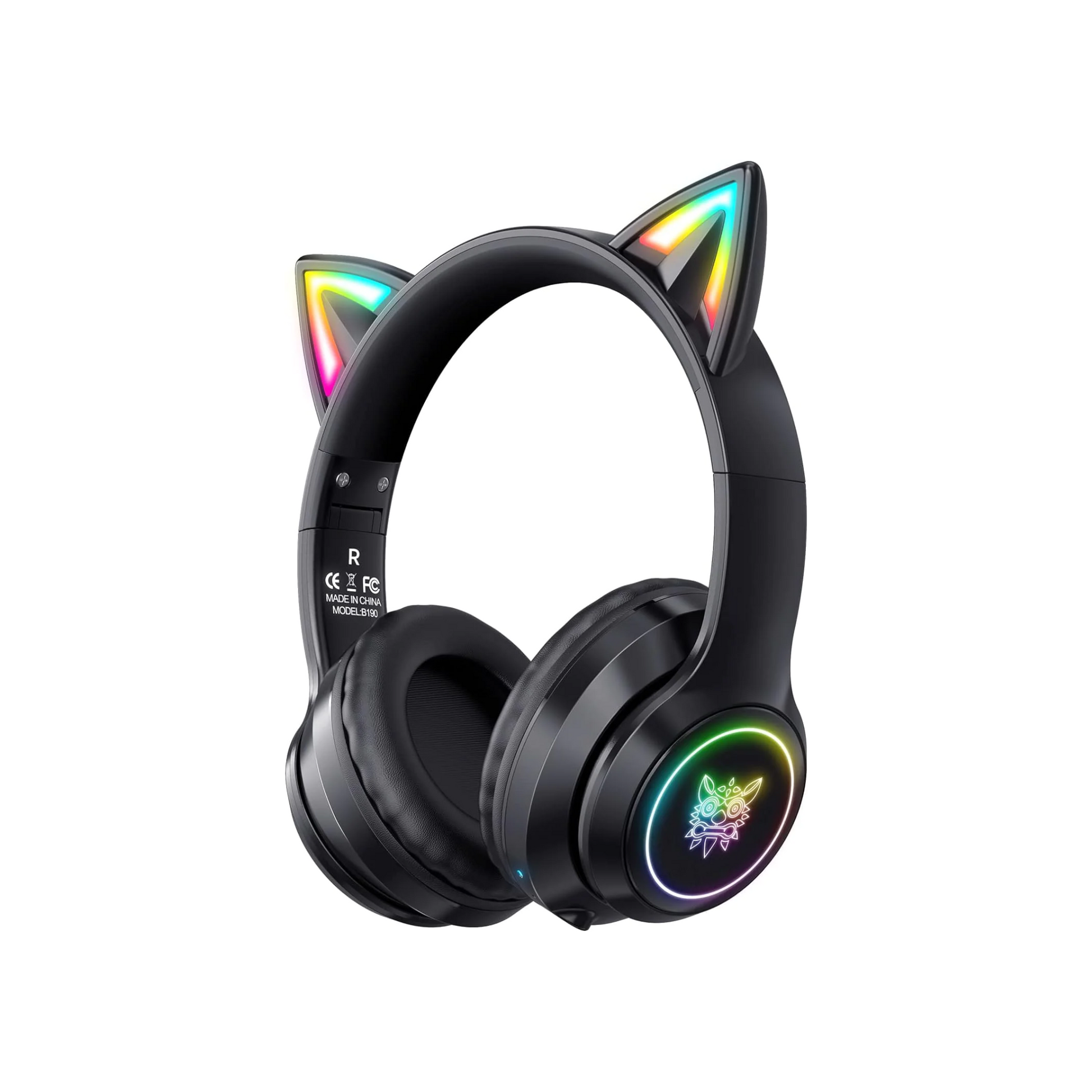 ULTREND Bluetooth Kids Headphones - Cat Ear LED, 85dB Volume, Foldable (Black)