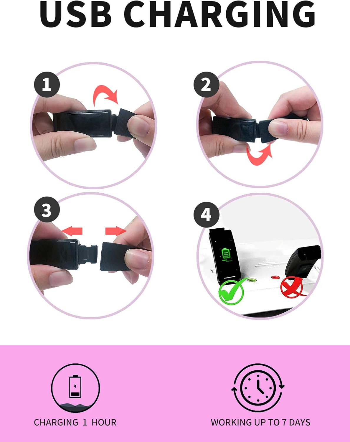 The tracker includes a replaceable band (purple and pink). Its slim, adjustable design fits kids and adults with smaller wrists. Made of durable TPU material, it’s flexible, comfortable, and free from harmful substances.