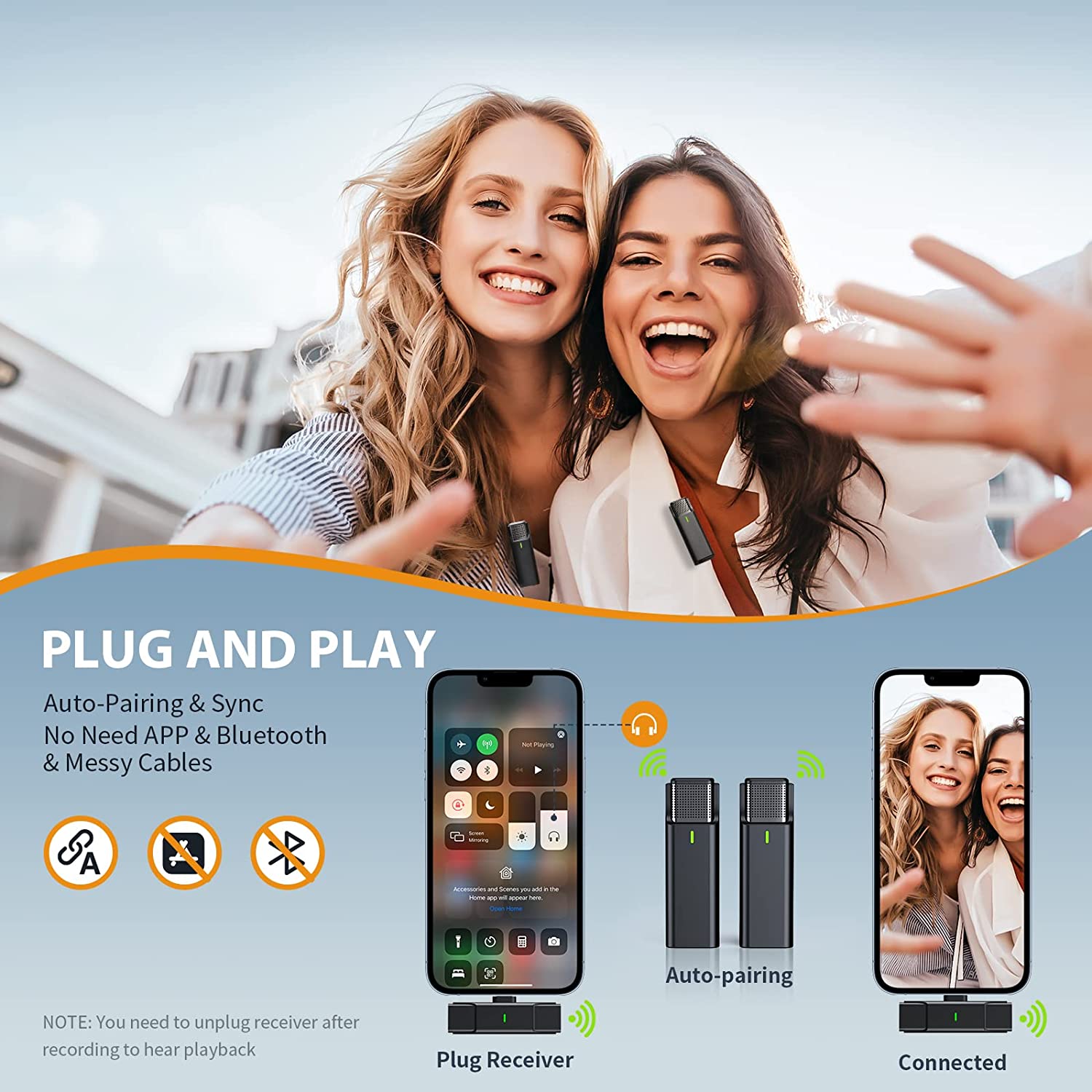 ULTREND Gen Z Pro Plug and Play Wireless Lavalier Microphones Compatible with iPhone iPad with 56H Charging Case