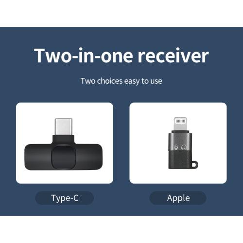 ULTREND Plug-Play Auto-syncs Wireless lapel Lavalier Microphone 2 in-1 Receiver (Lightning / USB C)