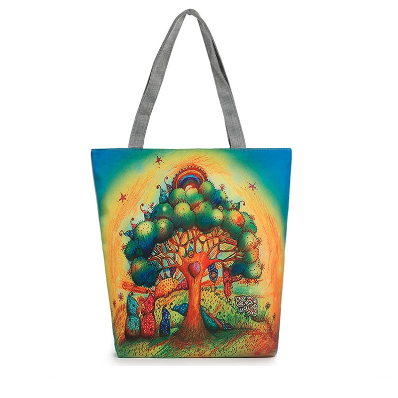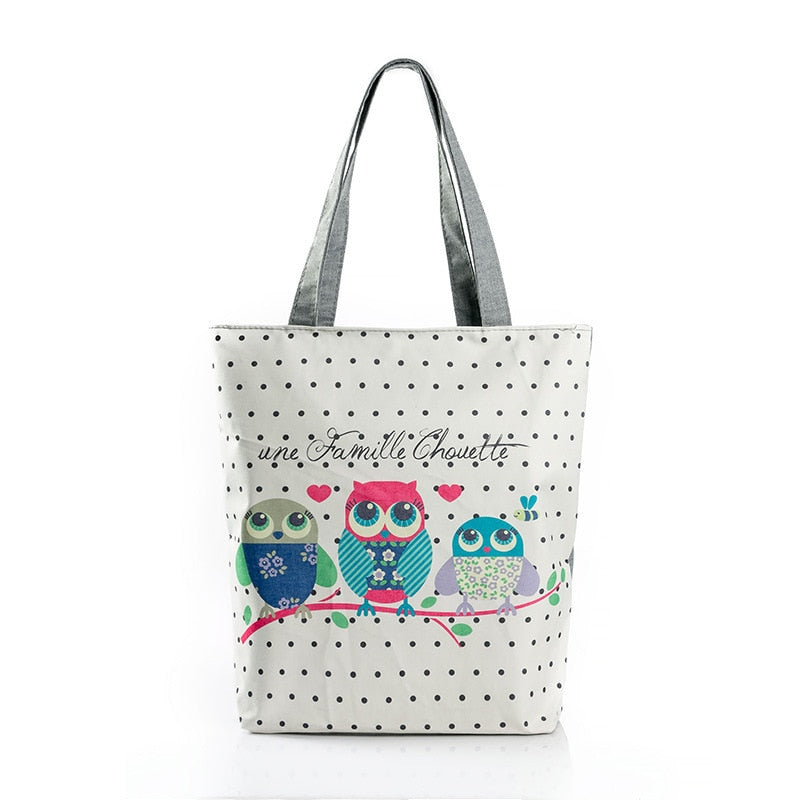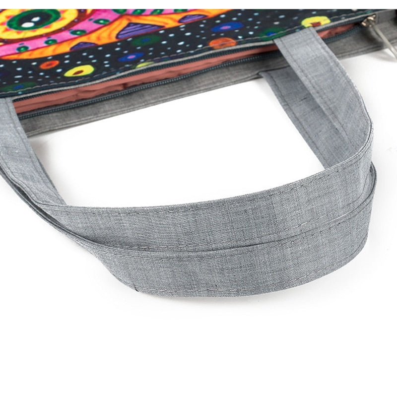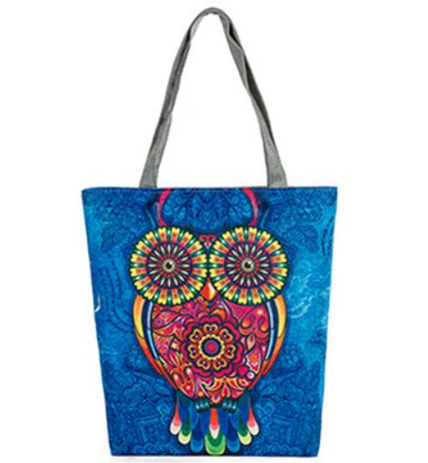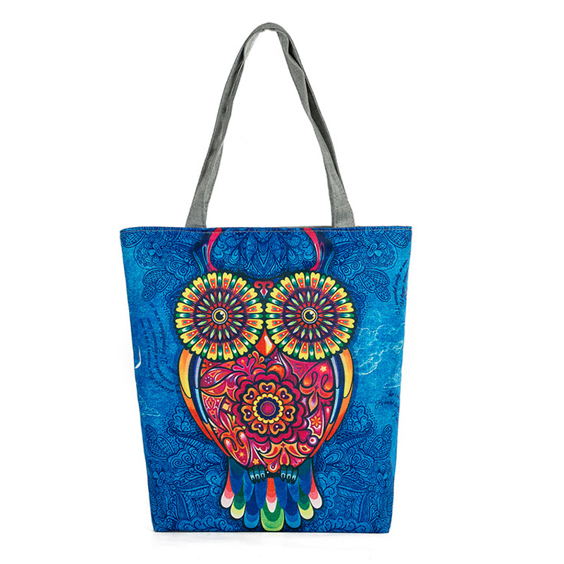Vintage Women Canvas Bags Large Thai Owl Tote bag HandBag