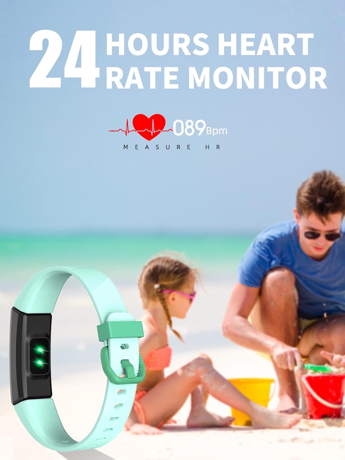This kids' fitness tracker monitors heart rate, sleep quality, steps, distance, and calories burned. Sync it to your phone via Bluetooth for detailed activity stats in real-time. Access more insights through the H Band Lite app.