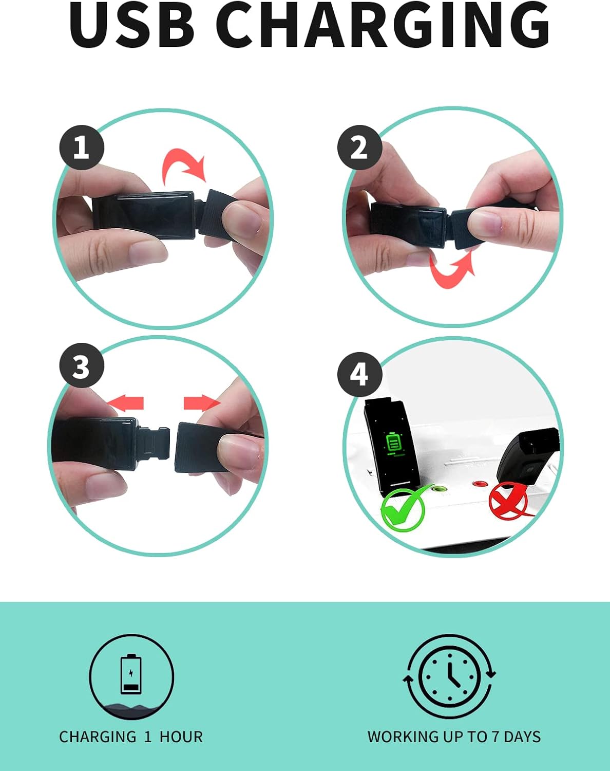 Equipped with a safe and efficient 105mAh lithium battery, this fitness tracker lasts up to 5 days after just 2 hours of charging. It is compatible with Bluetooth 4.0 and most iOS 8.0 & Android 4.4 smartphones and above.