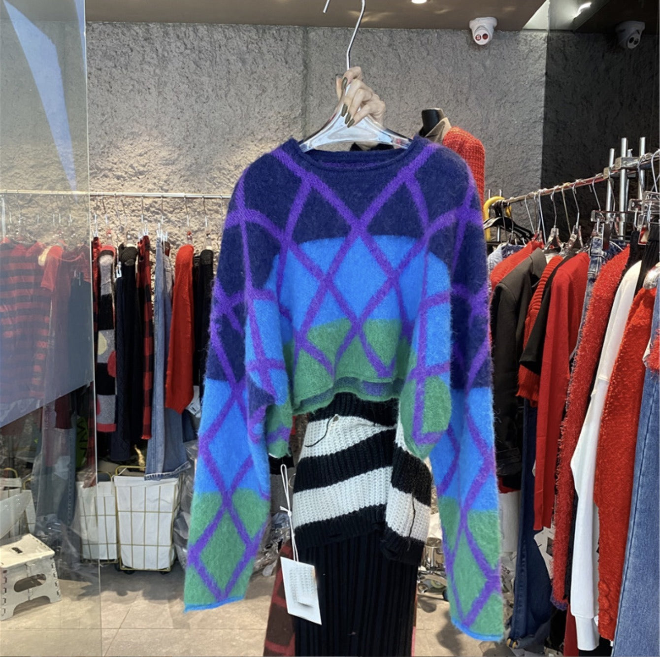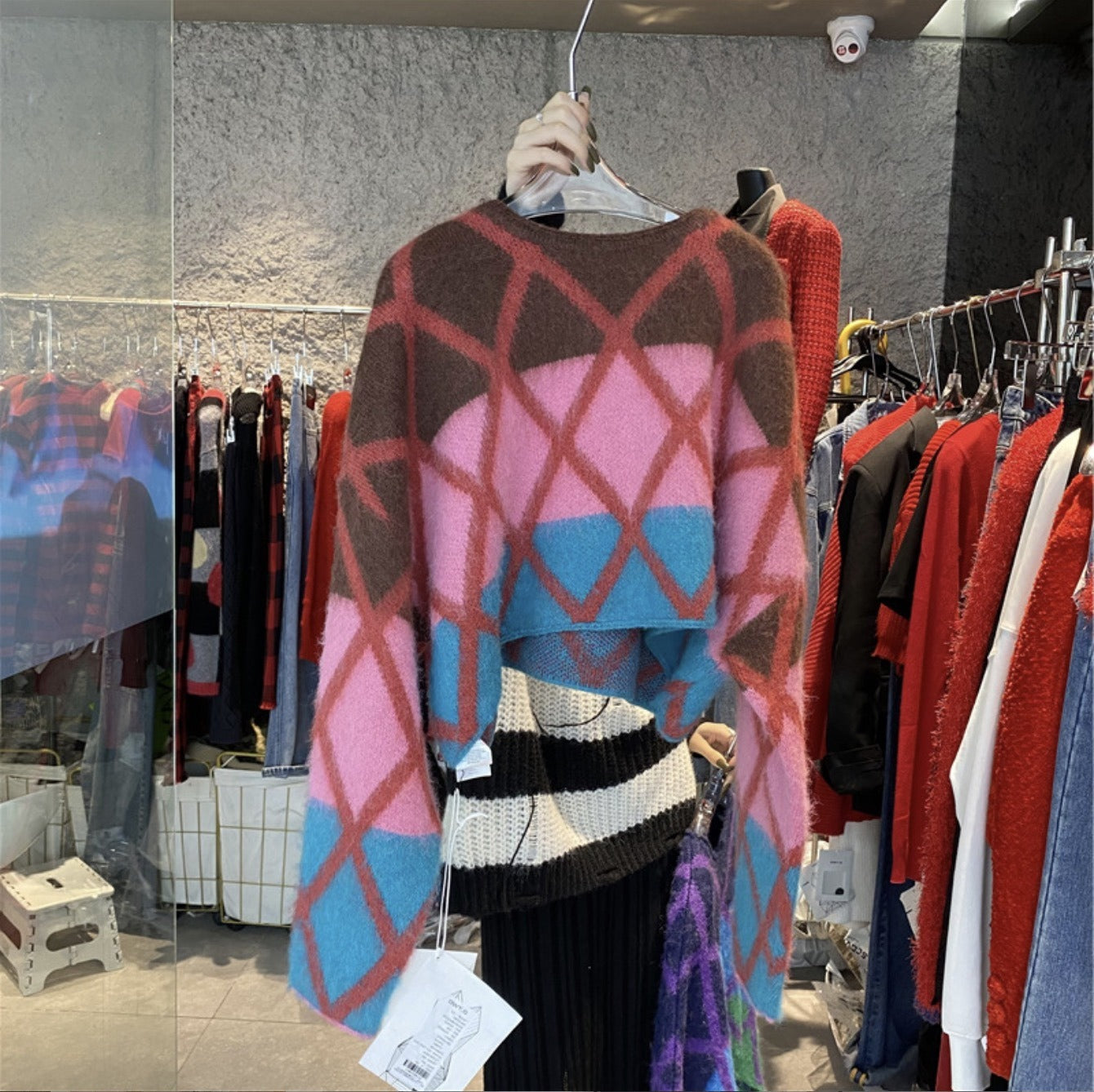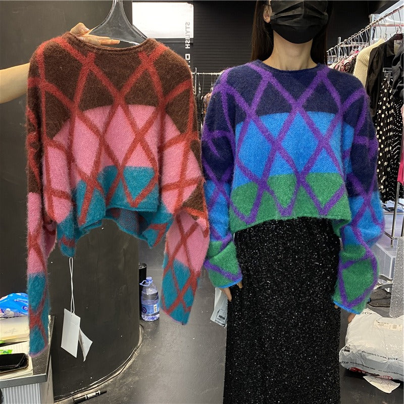 Wearing a lazy style short knit sweater outside, unique and unique top for women
